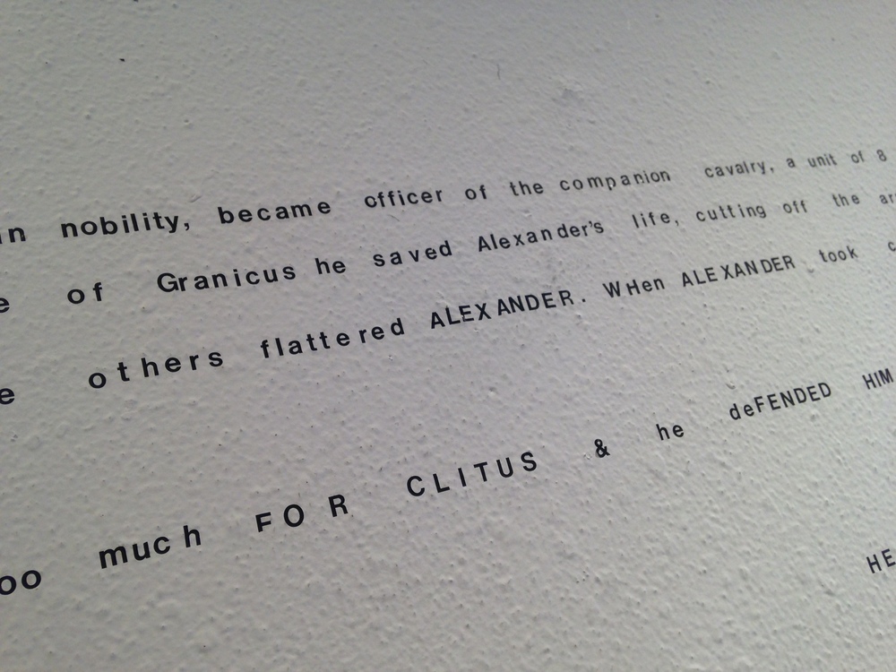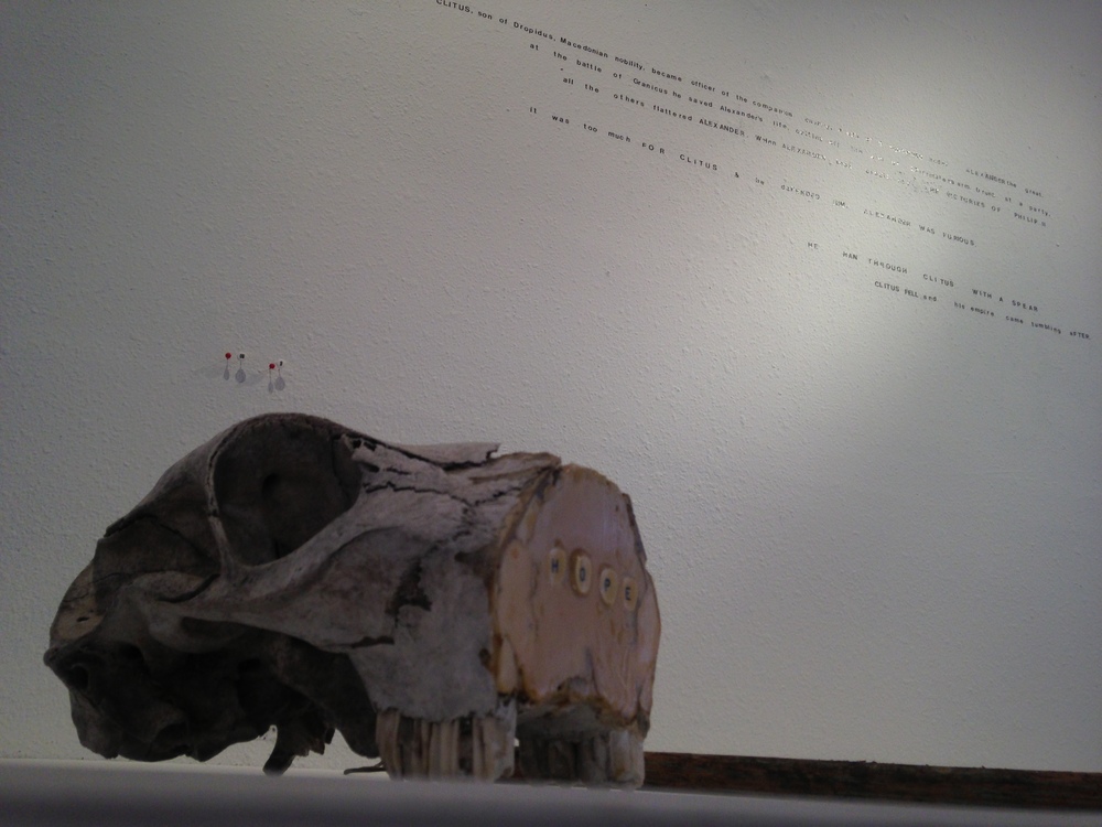This story speaks to the utilization of humble materials by McMahan to create the pieces in the show. "I like to think it was Alexander's ego and betrayal of his loved friend that brought down his empire. It's a very human story, a classic" said McMahan.